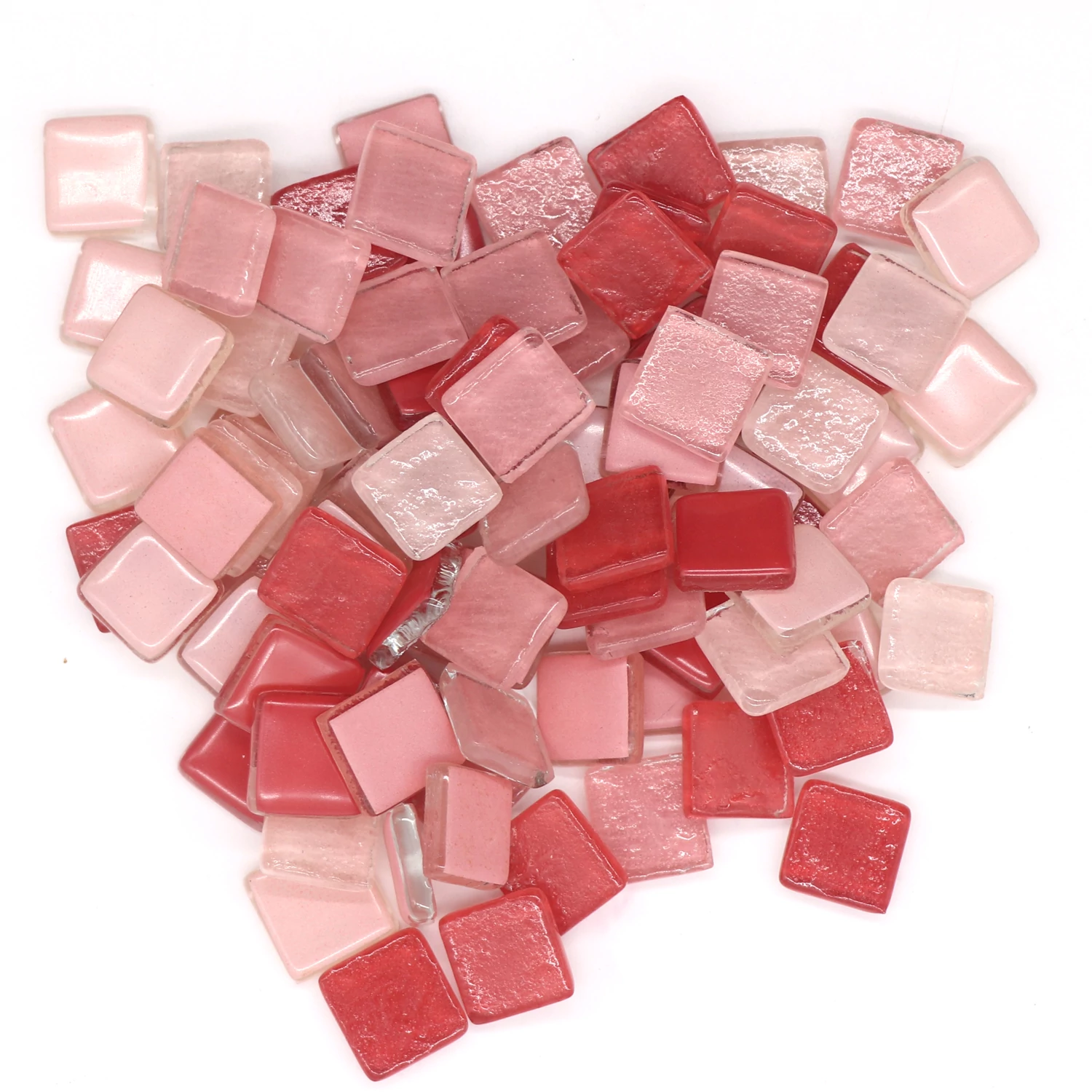 Mix of 15x15mm Square, 4mm Thick, Textured Surface Tiles, Red & Shades of Pink (Pack of 200Gms)
