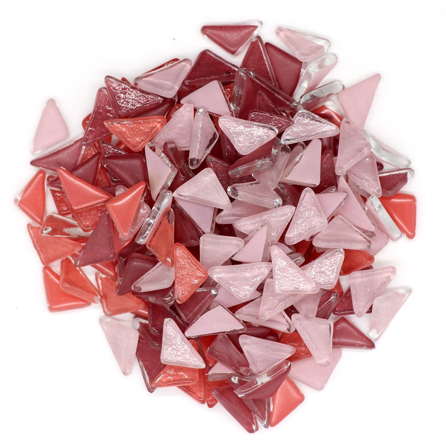 Mix of 15x15mm Size Triangles, 4mm Thick, Textured Glass, Pink Shade Assortment (Pack of 200Gms)