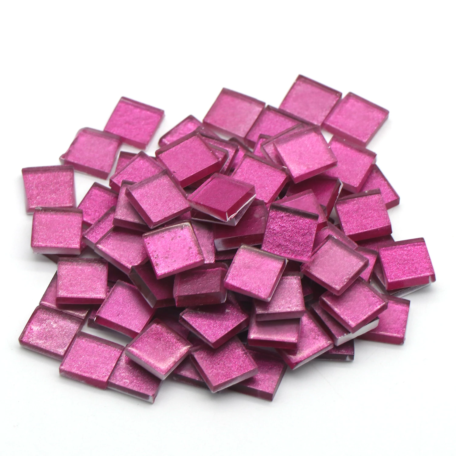 Mix of 15x15mm Square, 4mm Thick, Glitter Magenta Pink Color (Pack of 200Gms)