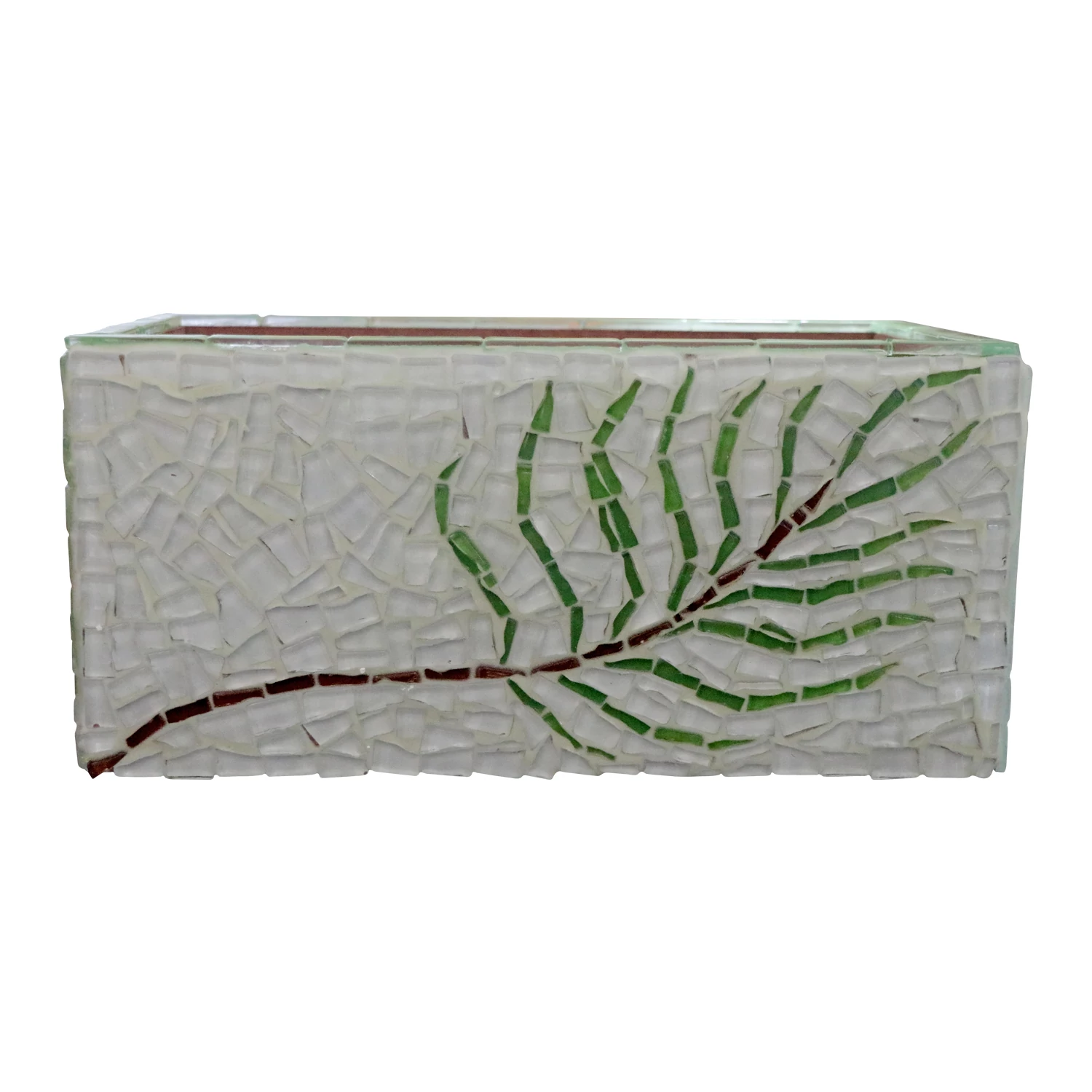 This glass mosaic vase is a stunning fusion of art and functionality. Its surface is adorned with an array of meticulously arranged colored tiles and fragments, forming intricate patterns and designs. The tactile texture of the mosaic adds a unique element, inviting touch and exploration. With its captivating beauty, the mosaic vase becomes a focal point, adding an exquisite touch of elegance to any space. This vase is definitely going to enhance your house. The base of the vase is made of MDF Wood, The outer size of the Planter is 6.25″x6.25″ with a height of 19″. The inner size is 5″x5″ with a depth of 18.5″.
