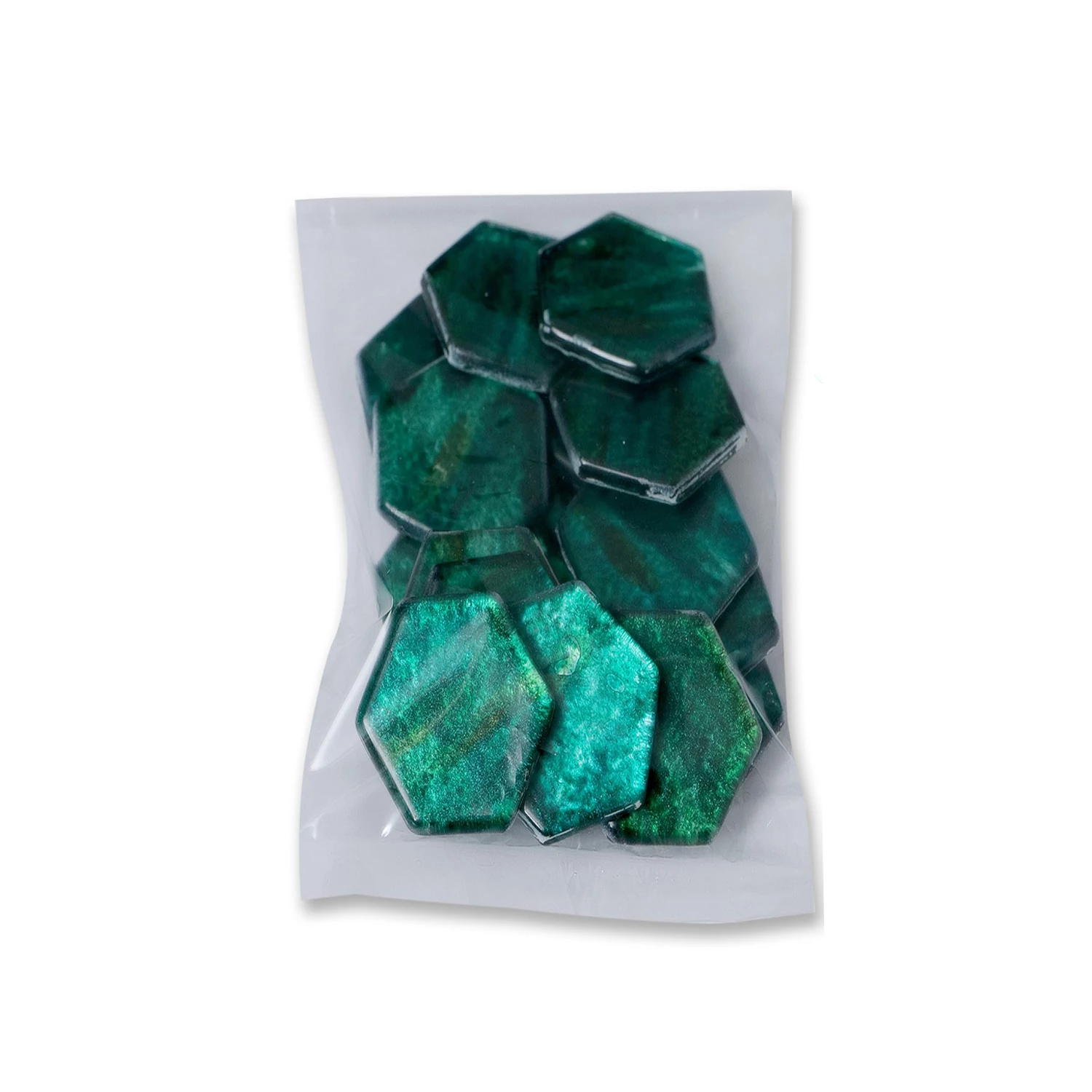 Hexagon Mosaic Tiles in Dark Green Brushing Effect