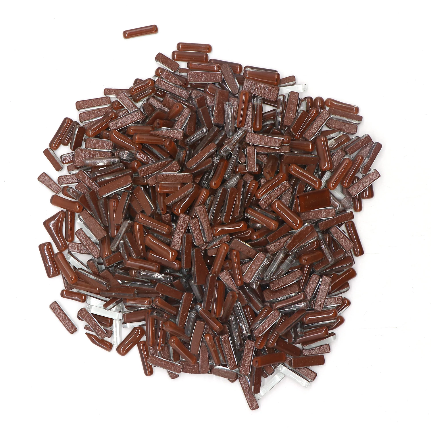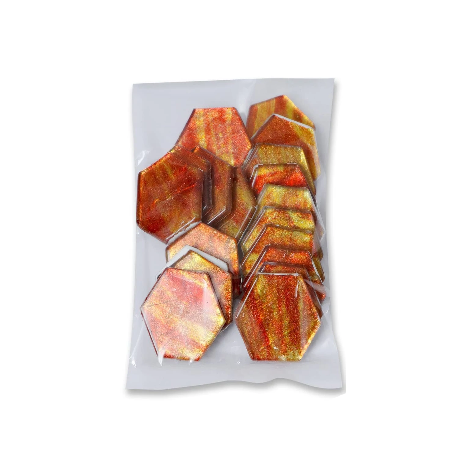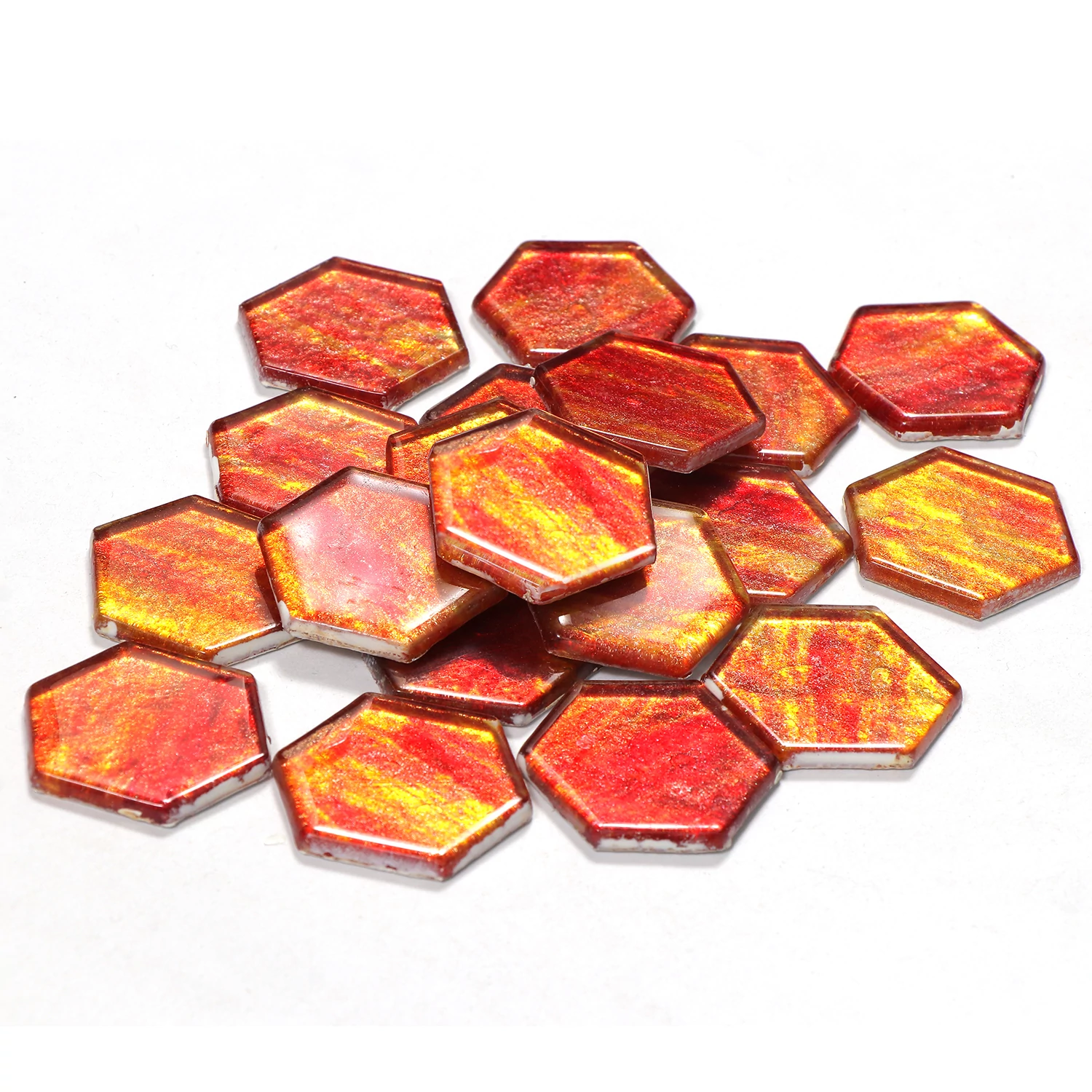 This 200gms pack of mosaic tiles contains 18-20 pieces approximately. These are hexagons in 35 mm size and 4mm thickness. It has smooth glass surface 2 shade brushing effect. The color will not fade in long time.