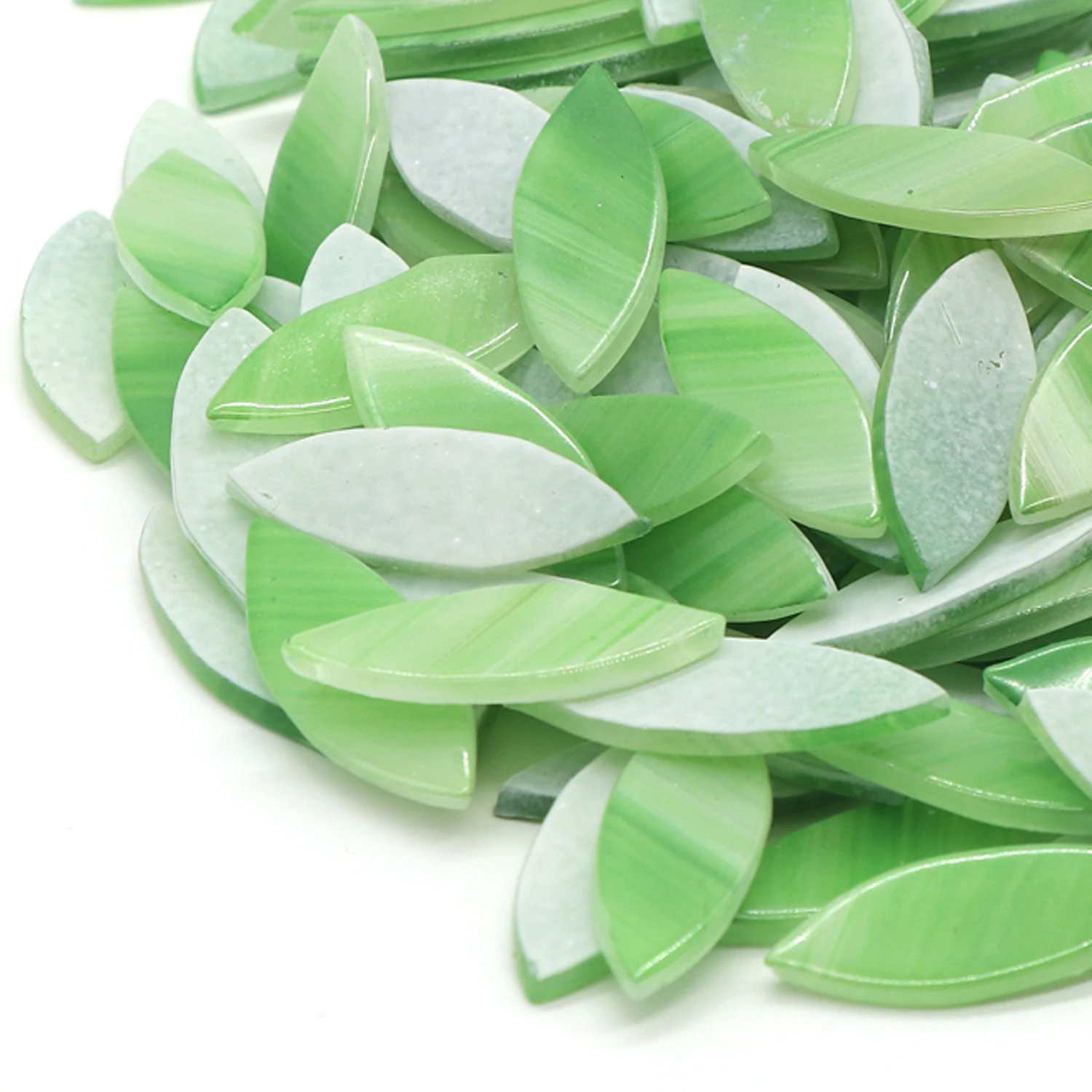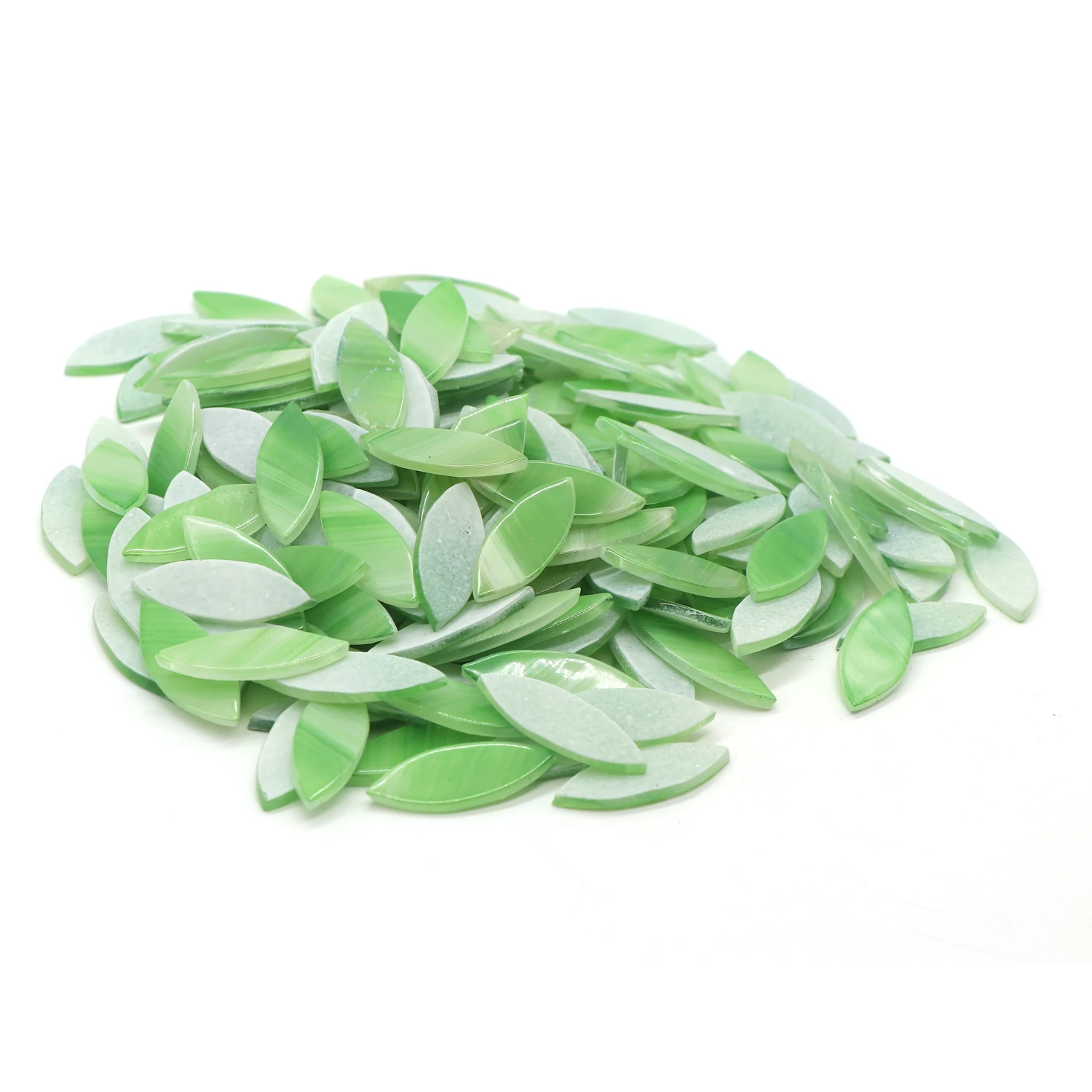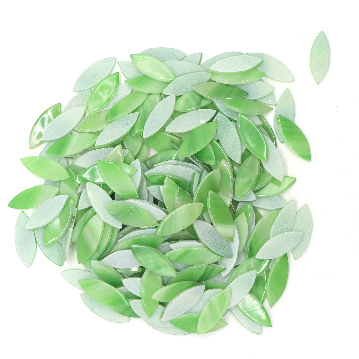 This 600gms pack of mosaic tiles contains 150-180 pieces approximately. They are leaves in 40x15mm size and 3mm thick.The color will not fade in long time. Our mosaics are easy to use in making any kind of DIY products, decoration & crafting purpose, artworks etc. and doesn’t require nipping. They can be easily fixed with the help of glue.