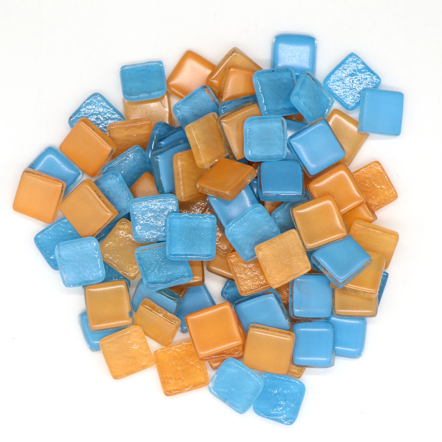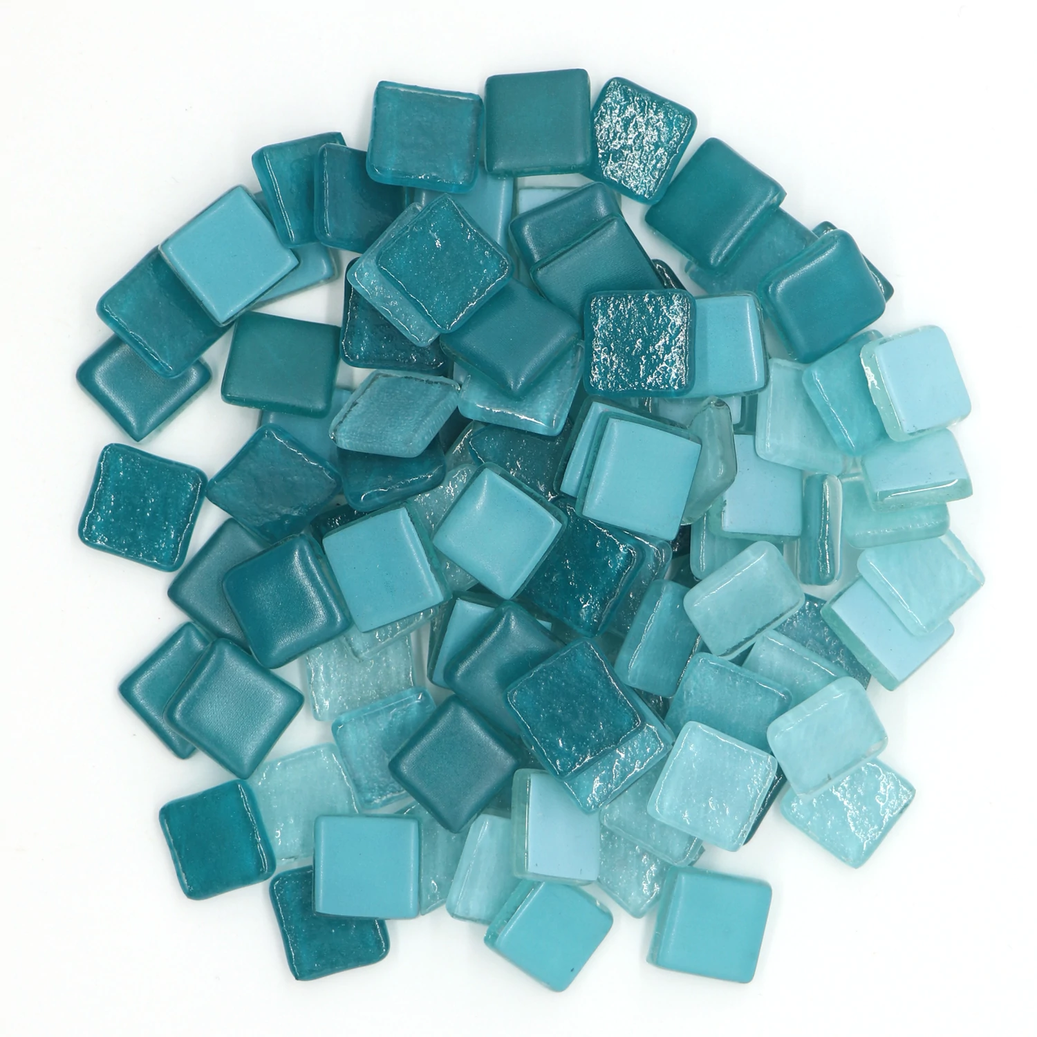 This 200gms pack of mosaic tiles contains 80-100 pieces approximately. These are squares in 15X15mm size and 4mm thickness. It has smooth glass surface and the color will not fade in long time.