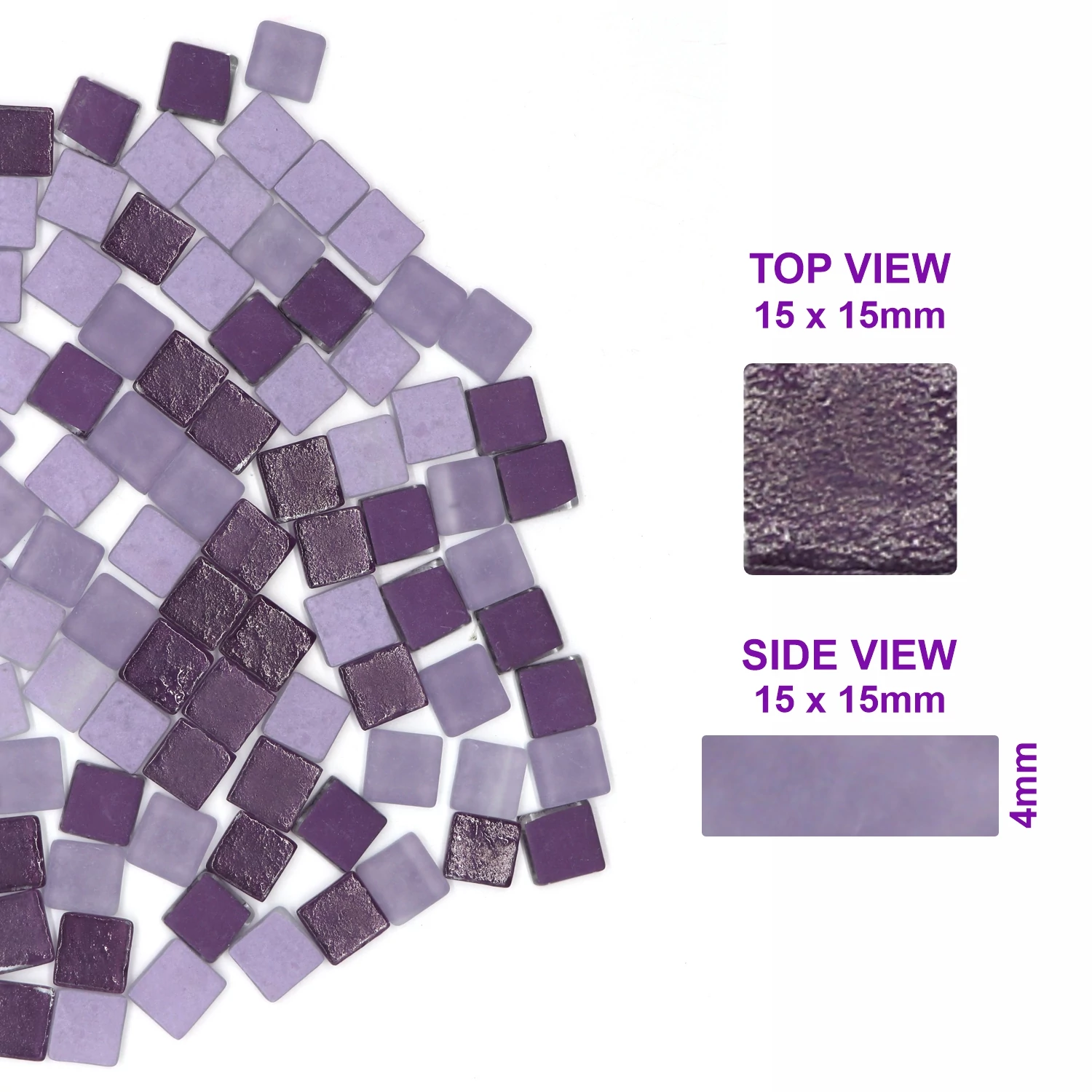 Mix of 15x15mm Square, 4mm Thick, Textured Surface Purple Tiles & Matt Finish Lilac Tiles (Pack of 200Gms)