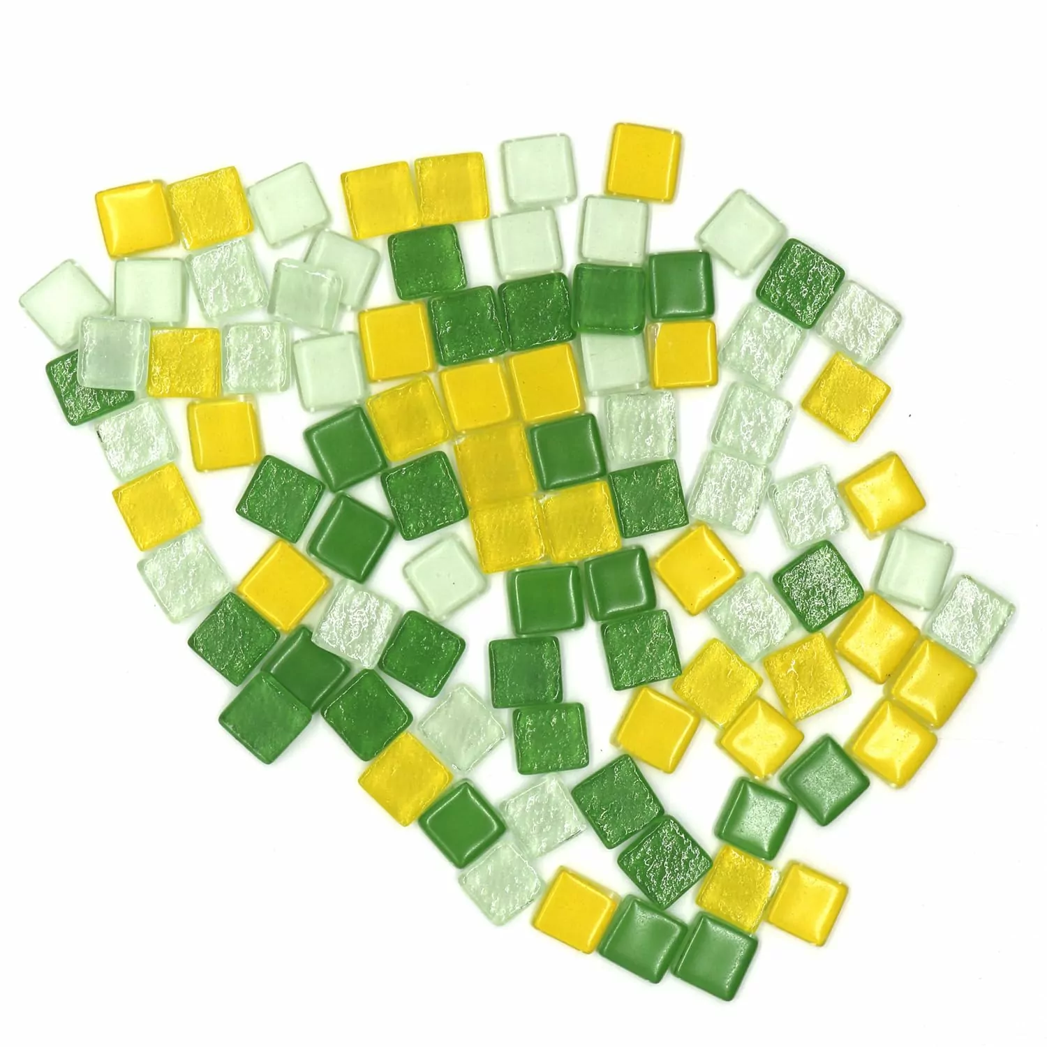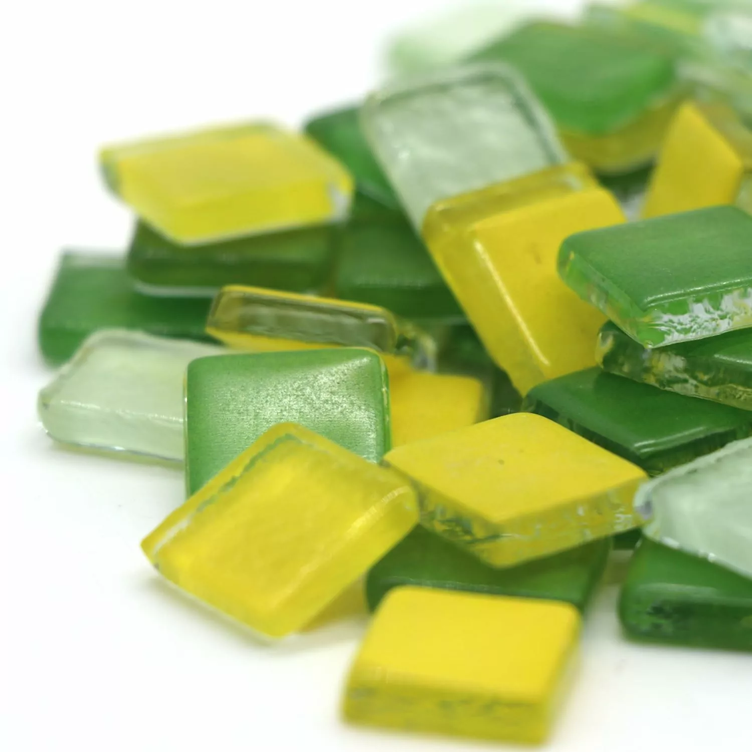 Mix of 15x15mm Square, 4mm Thick, Textured Surface Tiles, Green, Yellow & Light Green (Pack of 200Gms)