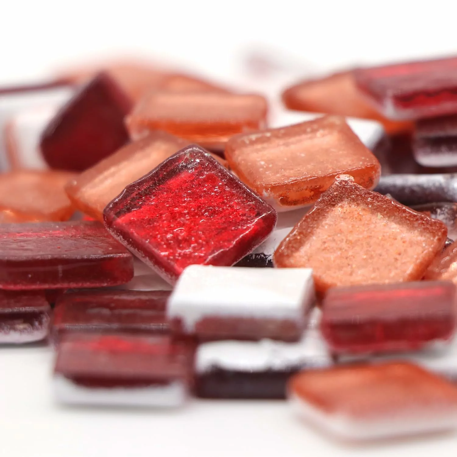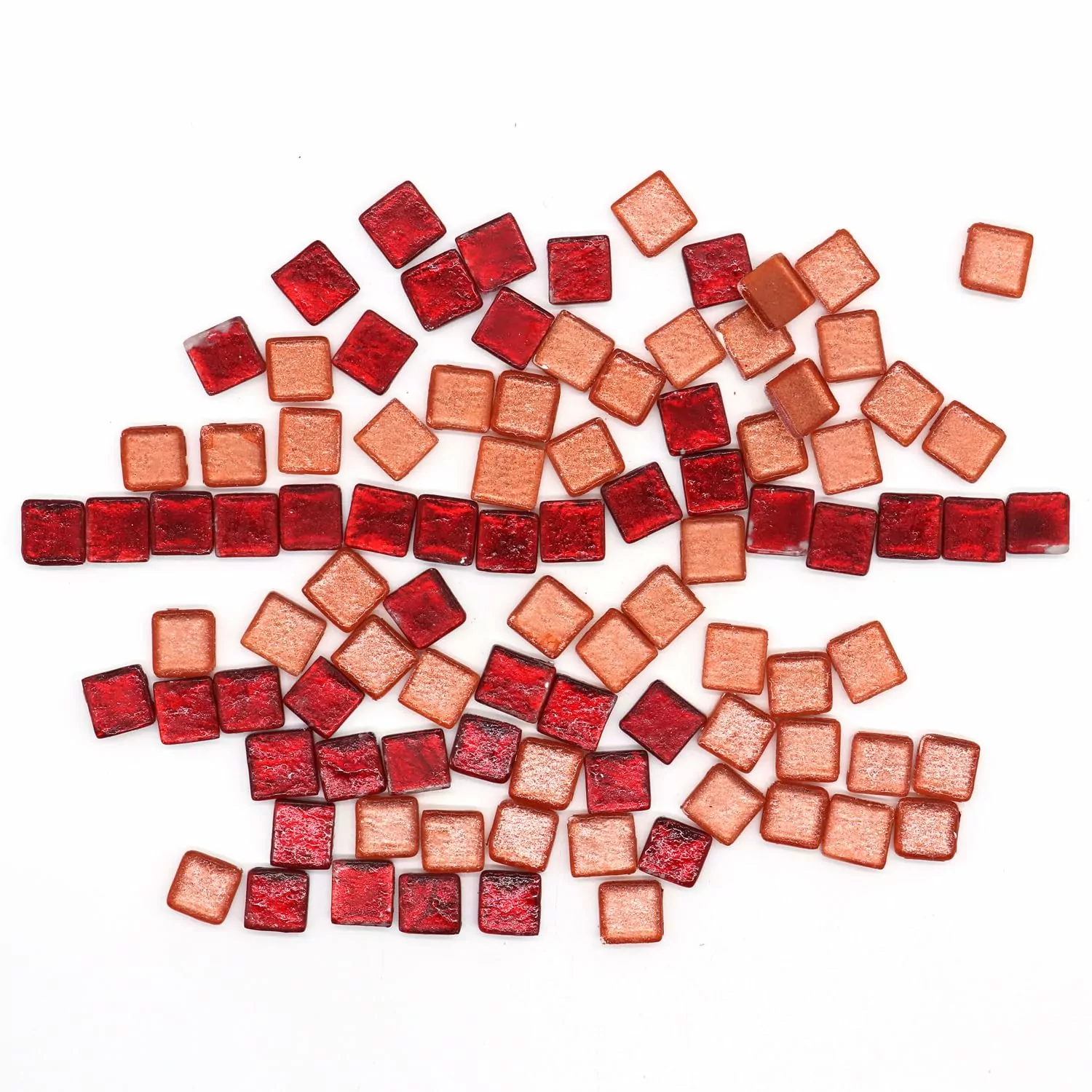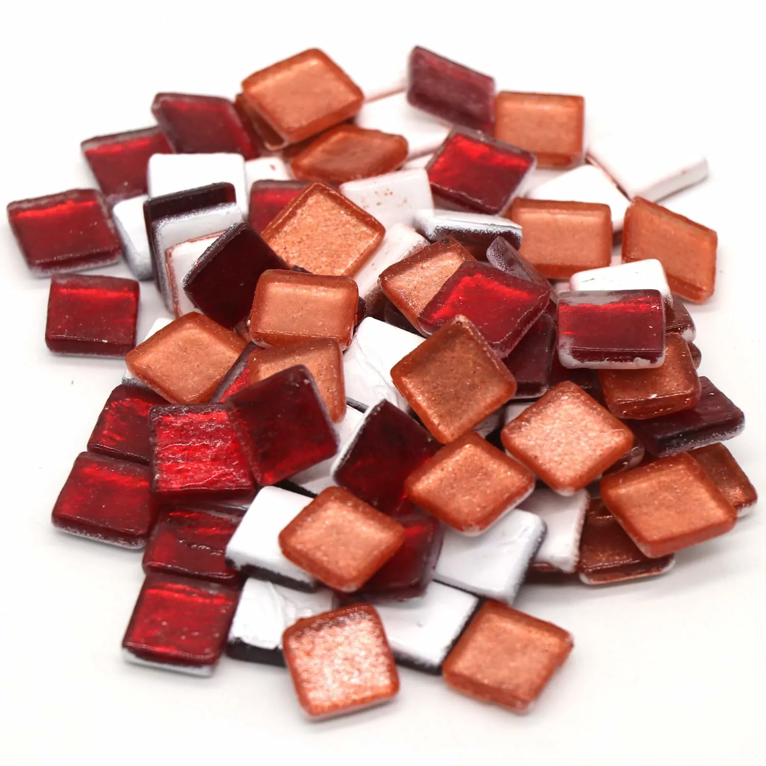 Mix of 15x15mm Square, 4mm Thick, Textured Surface Tiles, Red & Orange Color (Pack of 200Gms)