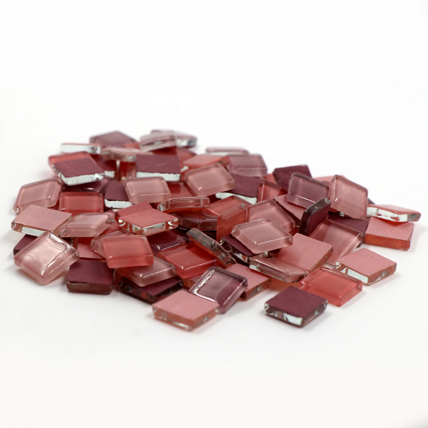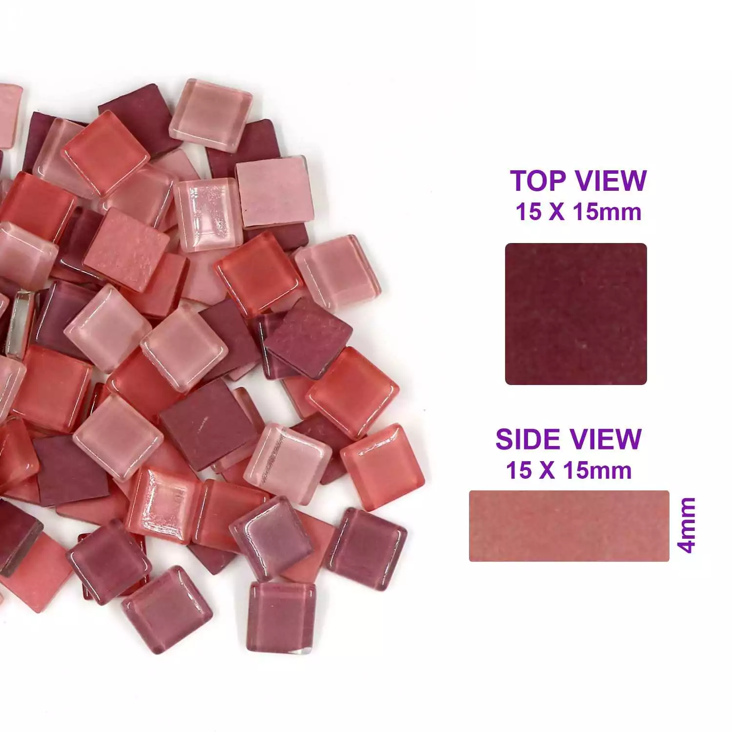 Mix 15x15mm Square Mosaic Tiles in Light Pink, Blush Pink & Mauve, 4mm Thick