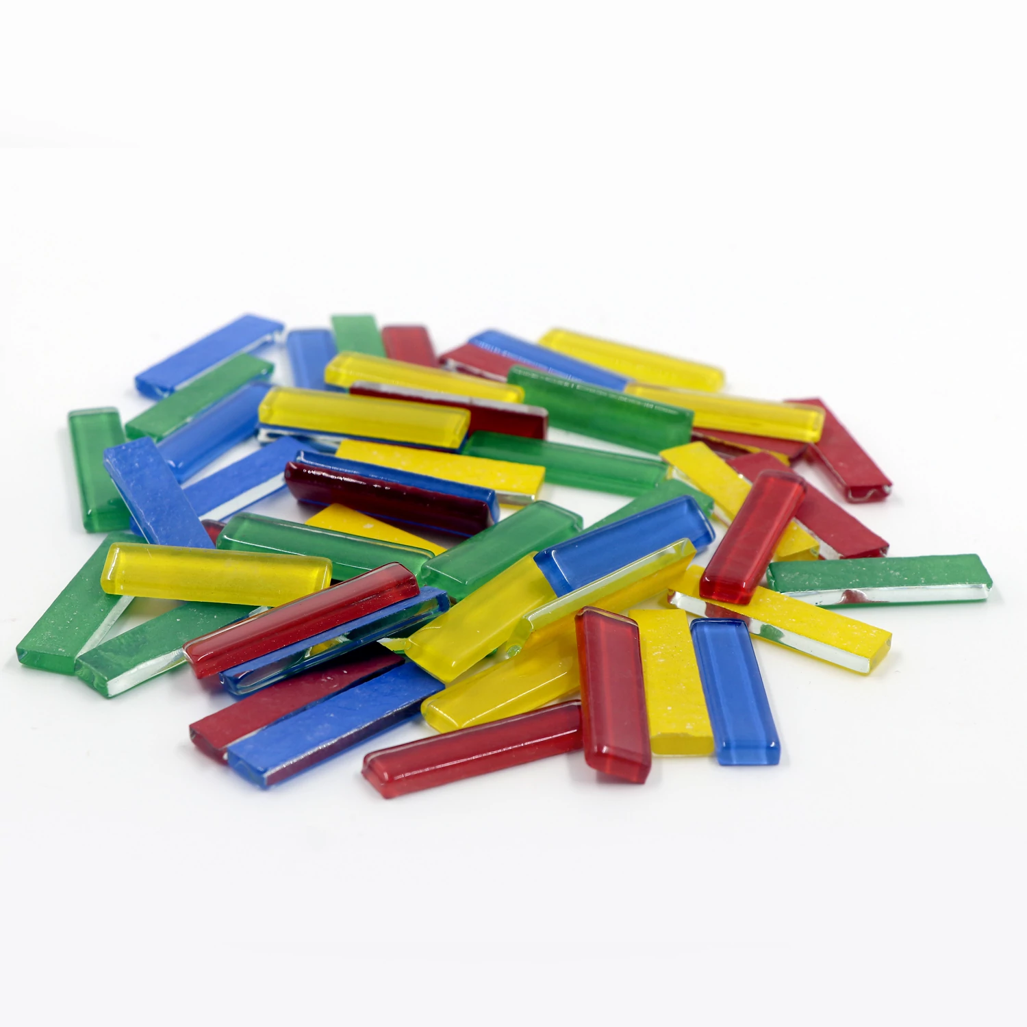 This 200gms pack of mosaic tiles contains 49-50 pieces approximately. These are pipes in 10X40 mm size and 4mm thickness. It has smooth glass surface. The color will not fade in long time. Our mosaics are easy to use in making any kind of DIY products, decoration & crafting purpose, artworks etc. and doesn’t require nipping. It can be easily fixed with the help of glue.