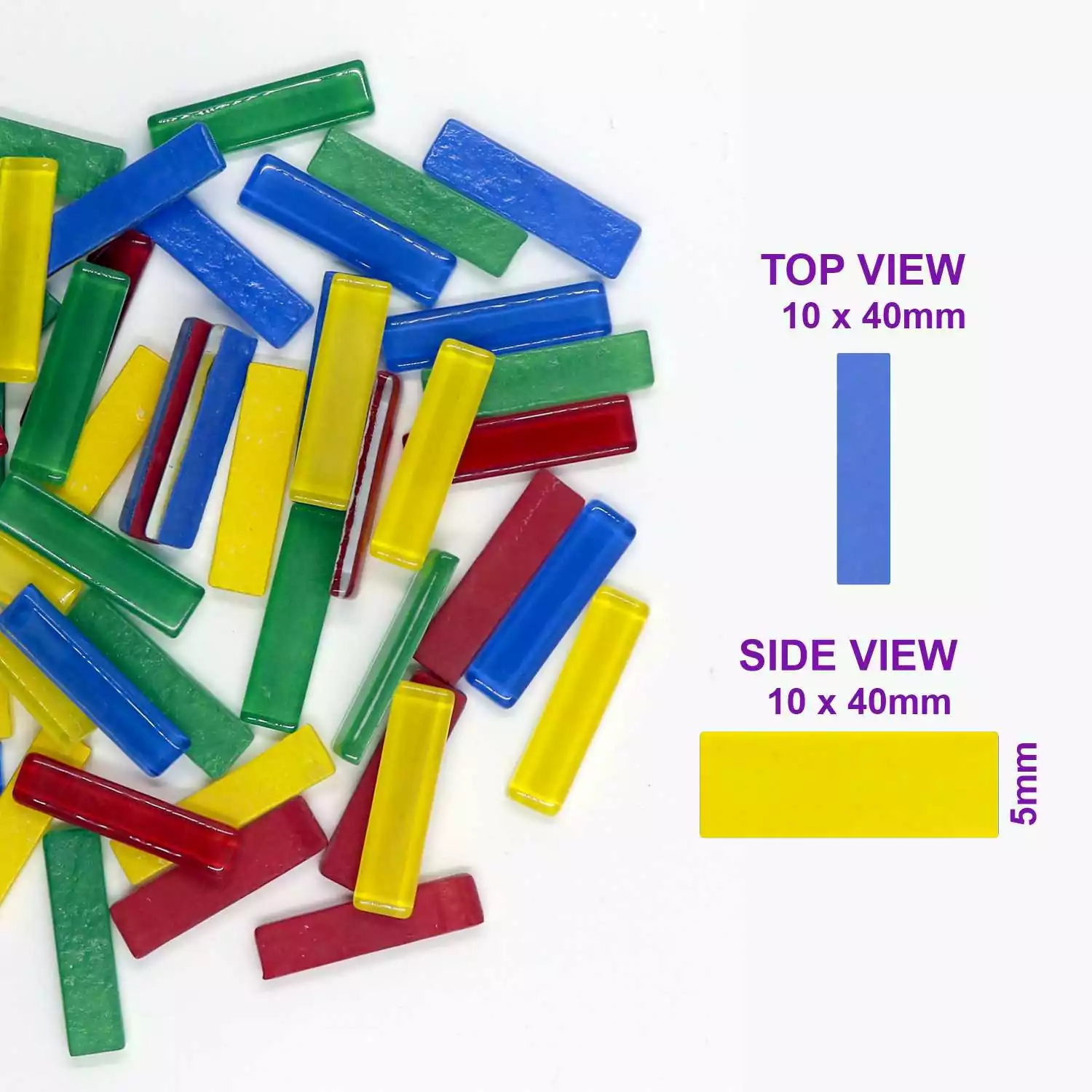 Size: 10x40mm | Thickness: 4mm | Material: Glass | Surface: Glossy