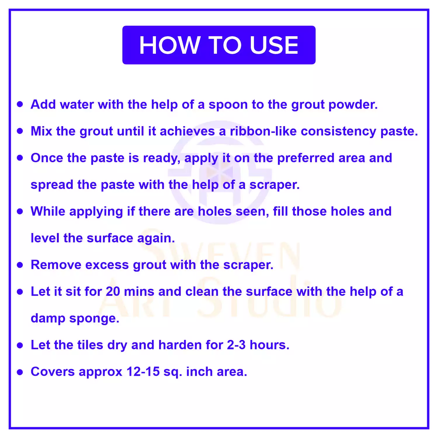 - 100Gms pack of Grout covers approx 12-15 sq. inch area.